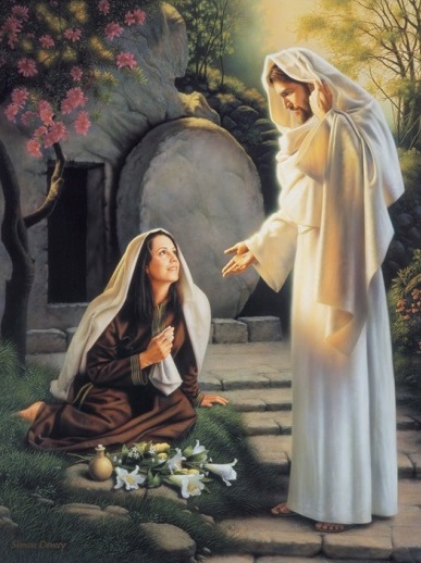 Pierre et Jean rentrent chez eux. Ils viennent de comprendre les paroles de l’Ecriture selon lesquelles Jésus devait se relever d’entre les morts. Marie-Madeleine de son côté sera consolée par Jésus « Femme, pourquoi pleures-tu ? » Marie-Madeleine ne reconnaît Jésus que lorsqu’il l’appelle par son prénom. Miracle de la re-connaissance. Une mission est alors confiée à cette femme, premier témoin de la résurrection : « Va trouver mes frères et dis leur que je monte vers mon Père qui est votre Père, vers mon Dieu qui est votre Dieu ».