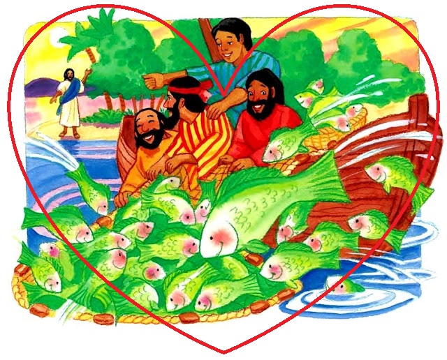 N’est ce pas là l’œuvre de Dieu ? L’abondance des choses quand nous demandons mais aussi cela nous fait rappeler le passage écrit par Luc, où on parle de l’appel des apôtres Pierre, Jacques et Jean, qui abandonnant leurs filets se mettent à la suite du Christ et deviennent ‘pêcheurs d’hommes’. Et ici dans ce passage biblique, Jean, réitère l’histoire la manifestation de Jésus ressuscité avec le même groupe de pêcheurs, confirmant par un repas pris ensemble l’aspect physique de sa résurrection.